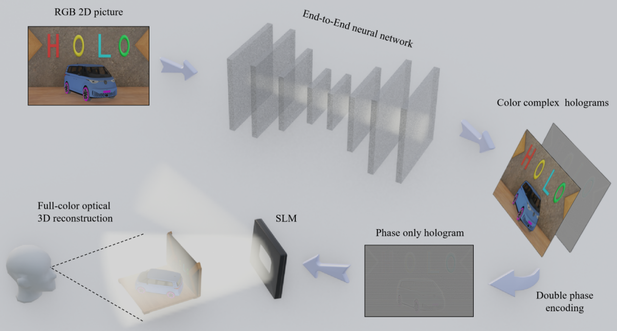 基于神经网络的从2D到3D全彩全息显示系统示意图